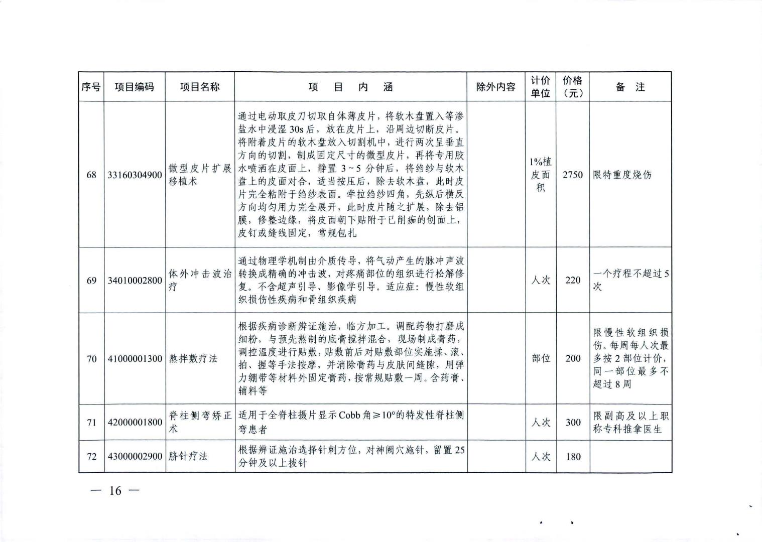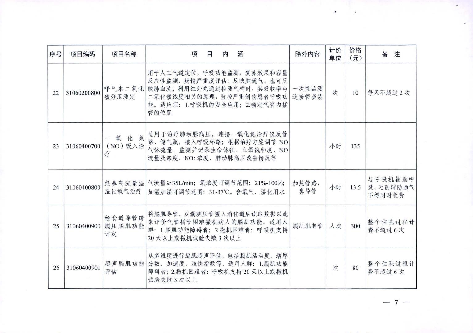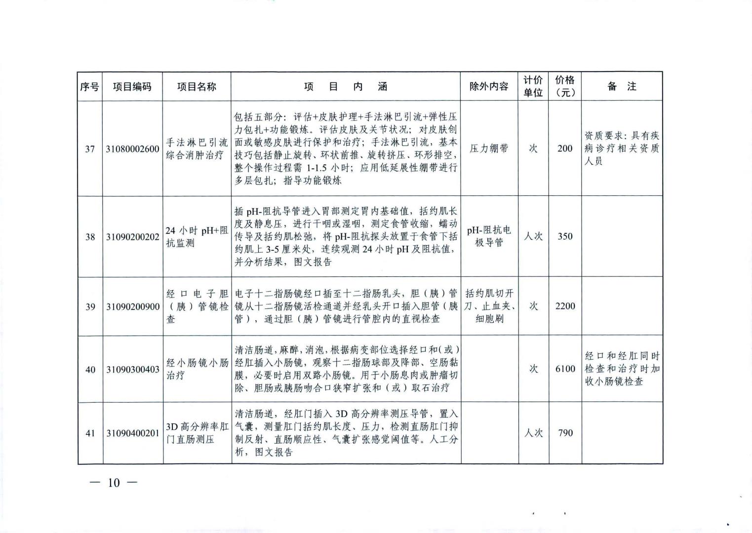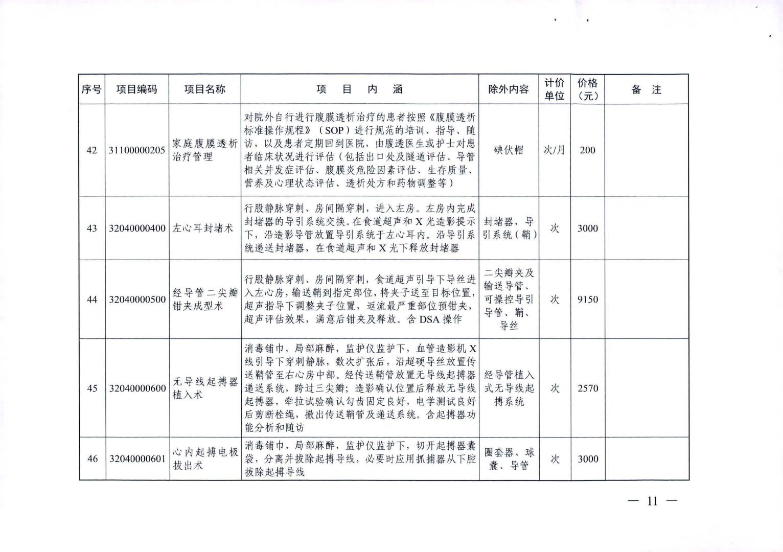 新增医疗服务价格项目及试行价格表